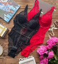 Body koronkowe na cienkiej miseczce - Czerwony | Bez push-up