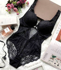 Body z koronkowymi paskami - Czarny | Push-up