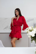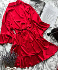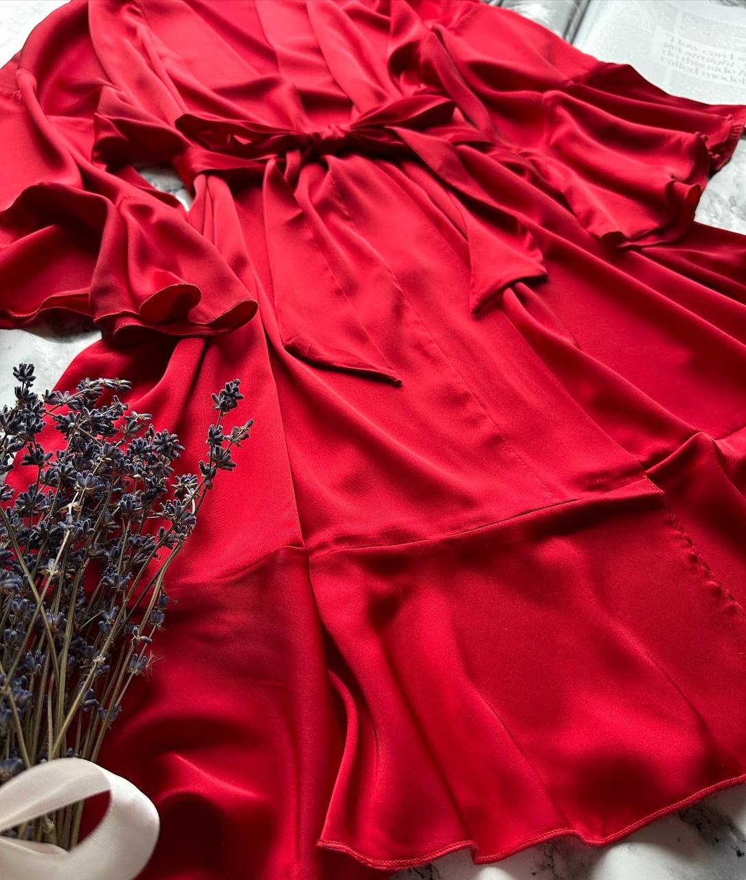 Wprowadź do swojej garderoby nutę luksusu i kobiecego wdzięku dzięki temu wyjątkowemu szlafrokowi wykonanemu z gładkiej, satynowej tkaniny. Intensywny, głęboki kolor dodaje pewności siebie, a miękki materiał delikatnie otula ciało.