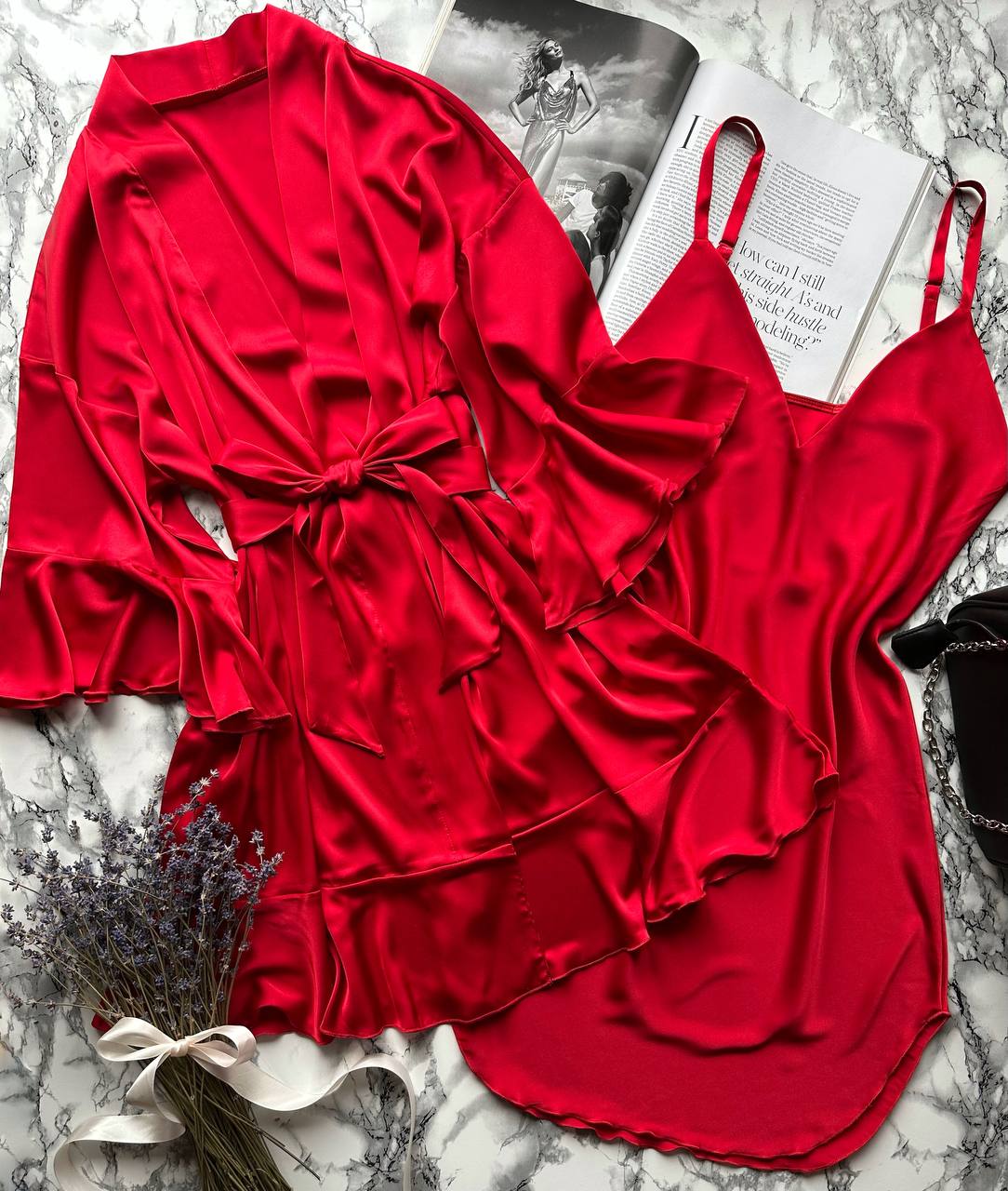 Do tego szlafroka doskonale pasuje lekka koszulka nocna w tym samym kolorze, wykonana z tej samej satynowej tkaniny. Razem tworzą elegancki i wygodny zestaw na noc lub jako wyjątkowy prezent dla bliskiej osoby.