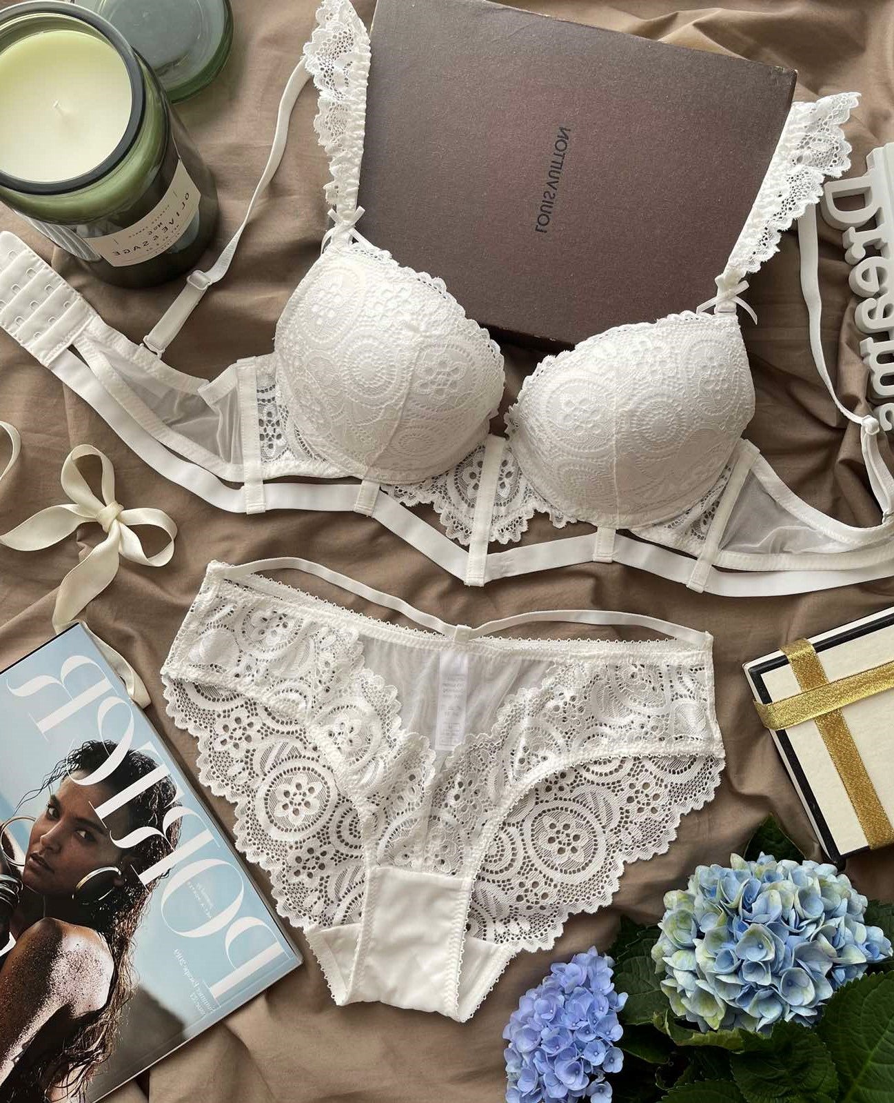 Biały gorsetowy komplet z koronką – zmysłowość w czystej postaci