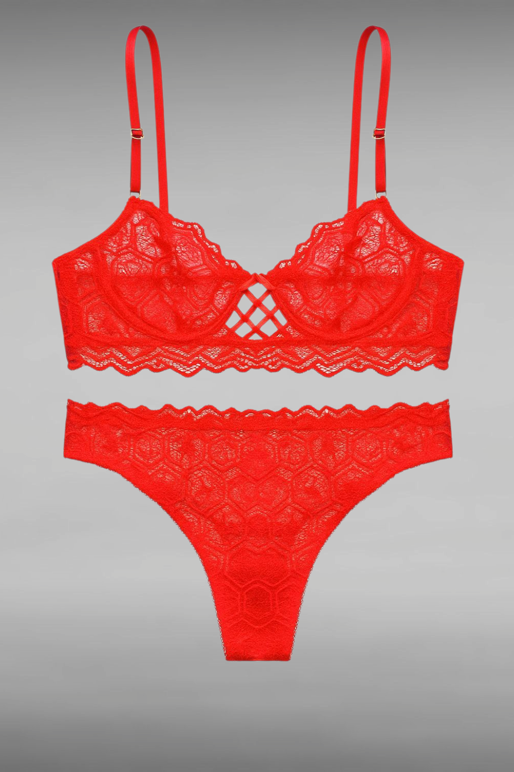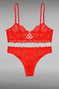 Klasyczny komplet koronkowej bielizny bez push-upu Czerwony