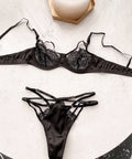 Koronkowy komplet bielizny z paskami – zmysłowa elegancja w czerni