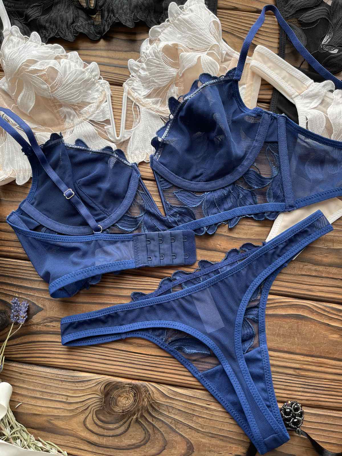 Kwiecisty komplet bielizny premium w kolorze granatowym – DelBeauty