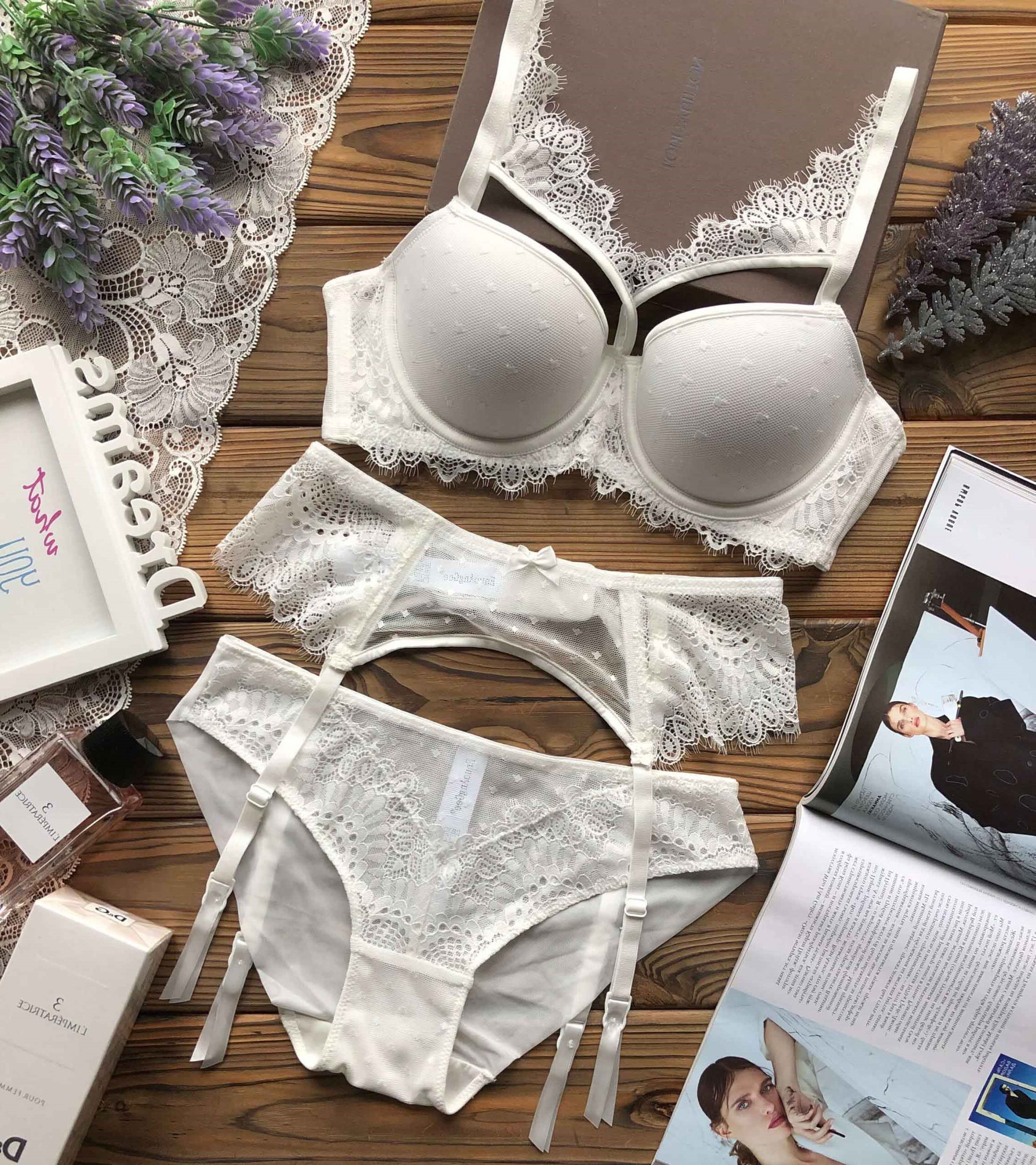 Elegancki zestaw premium, w którym subtelna koronka łączy się z gładką, elastyczną siateczką. Formujący biustonosz push-up pięknie modeluje sylwetkę, a lekkie figi zapewniają wygodę przez cały dzień. Świetny wybór do wyjątkowych stylizacji i na co dzień. Pasek do pończoch widoczny na zdjęciach nie jest częścią zestawu.