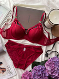 Nowoczesna forma i wygoda w wydaniu premium. Komplet łączy gładką, półtransparentną siateczkę z krzyżującymi się paskami, które subtelnie rysują linię dekoltu i talii. Miseczki z efektem push-up osadzone są na fiszbinach, dzięki czemu zapewniają stabilne podtrzymanie. Satynowe lamówki i metalowe łączniki w kolorze złota dopełniają całość.