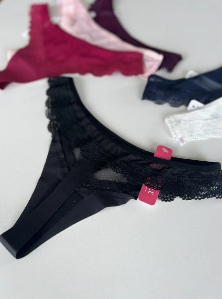 Eleganckie i kobiece stringi z połyskującego materiału z dodatkiem delikatnej koronki to połączenie komfortu i subtelnego uroku. Model wykonany z miękkiej, gładkiej tkaniny, która łagodnie dopasowuje się do sylwetki i nie odznacza się pod ubraniem. Subtelna koronka zdobiąca brzegi dodaje lekkości i romantycznego wyrazu, a średnia linia talii sprawia, że figi idealnie leżą na biodrach.