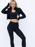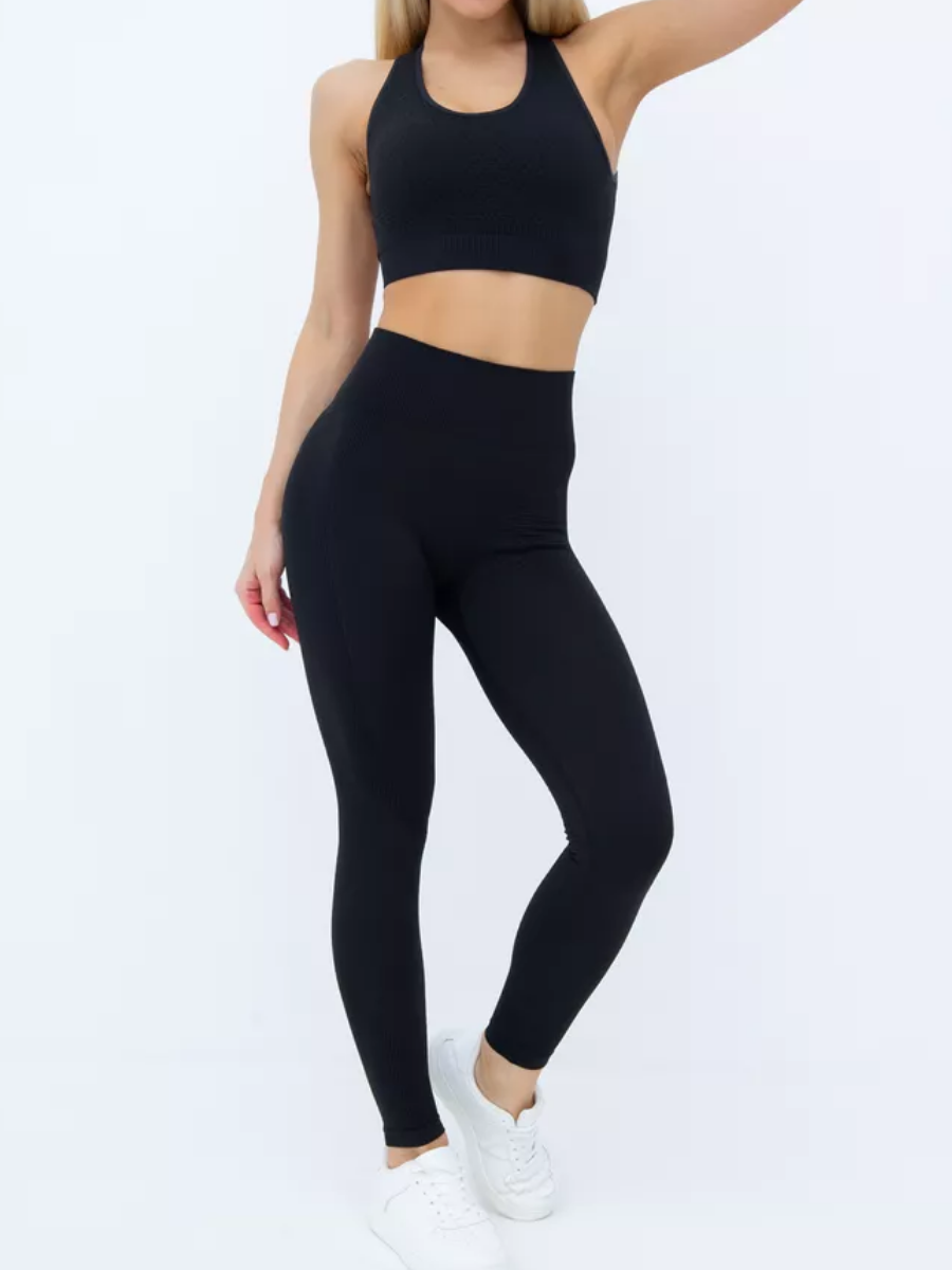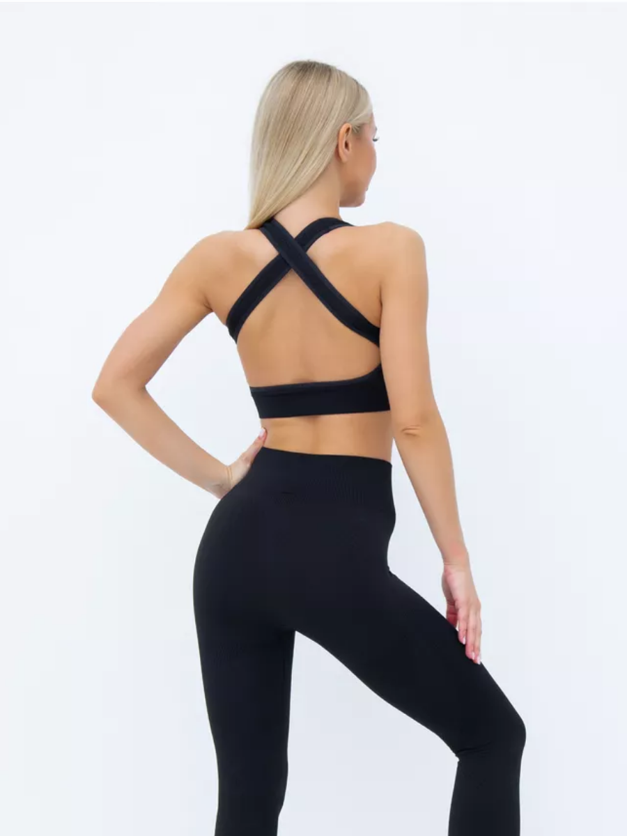 Sportowy komplet 3-częściowy z topem cross-back - Czarny