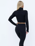 • Krótka bluza na zamek - lekka osłona przed i po treningu; dopracowany krój podkreśla linię ramion.