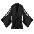 Szlafrok satynowy z koronkowymi rękawami Czarny